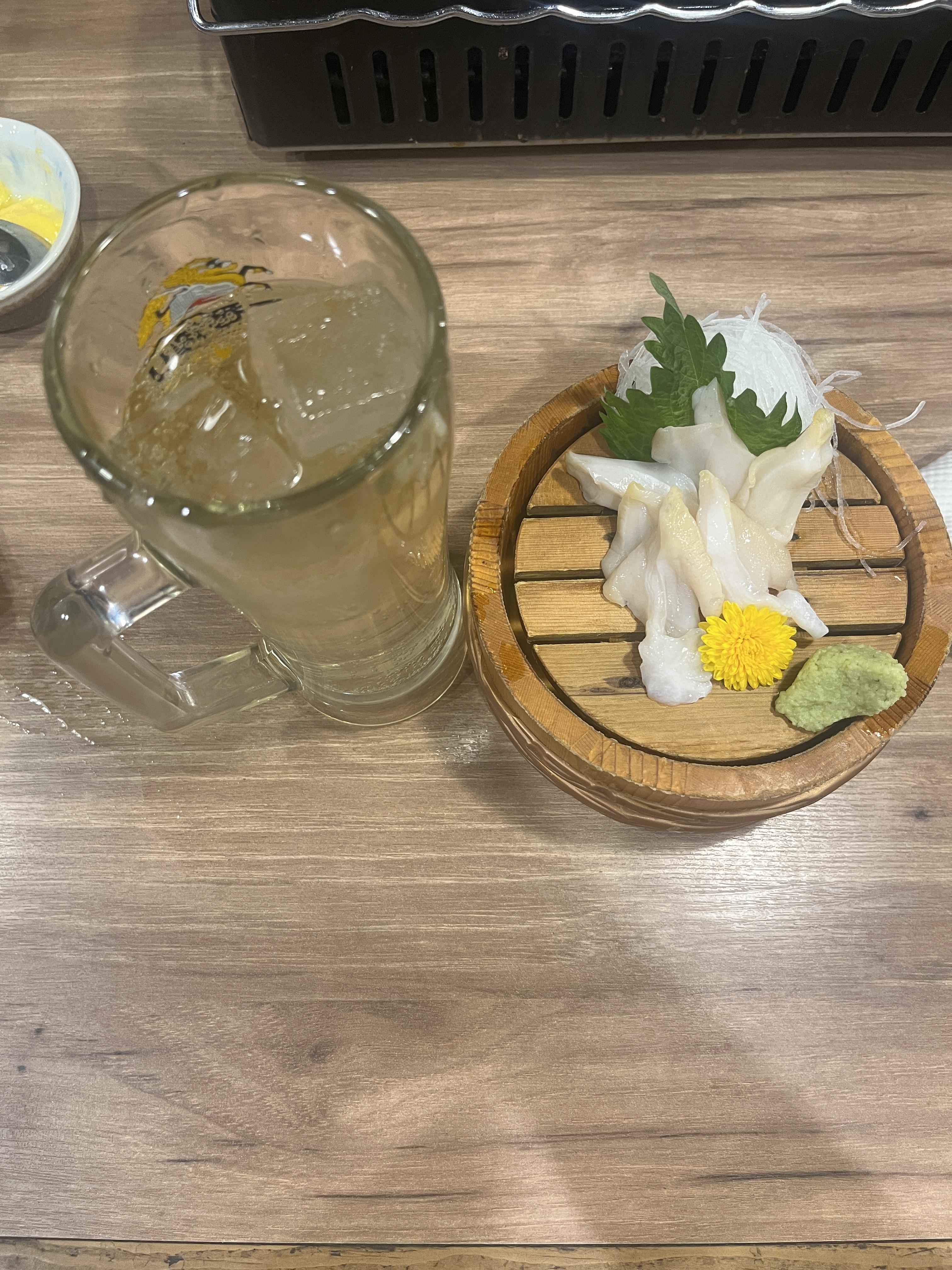 2. 츠부조개 사시미 - 은은한 단맛이 나고 한점의 상 하로 나누어 꼬들꼬들 + 부드러움의 두 가지의 식감이 있습니다